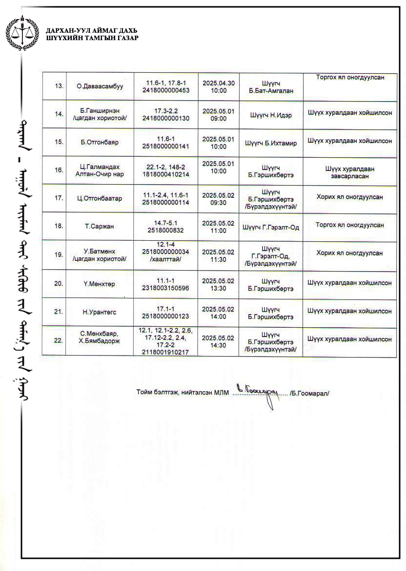 ШҮҮХИЙН /ЭРҮҮГИЙН ХЭРГИЙН/ 2025.04.28-05.02-НЫ