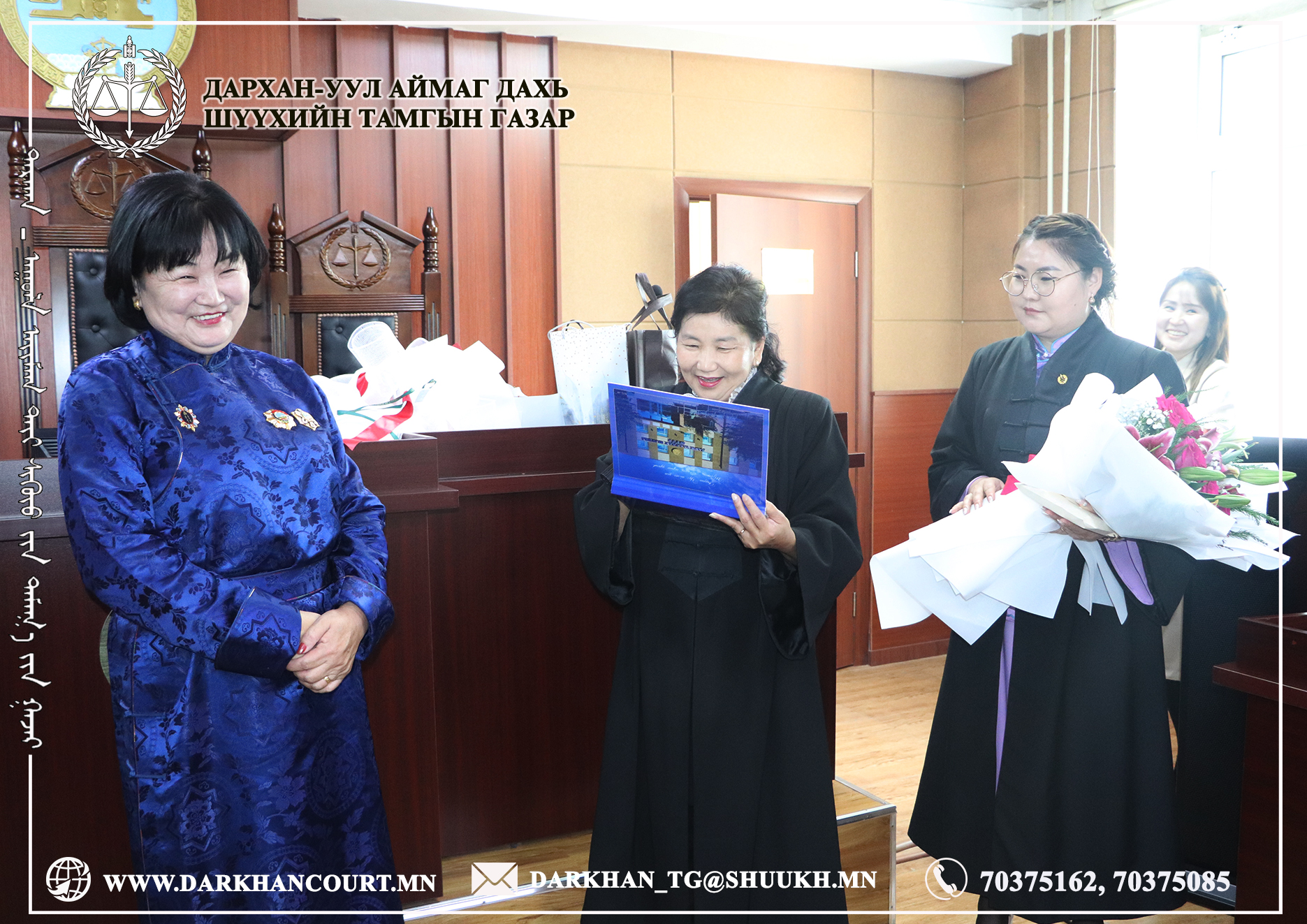 Шүүгч Ж.Оюунчимэг “Хүндэтгэлийн шүүх хуралдаан”-ыг даргалан явуулж шүүх хуралдаанд уригдан ирсэн зочид, хамт олондоо сэтгэлийн үгээ хэлж талархлаа илэрхийллээ.