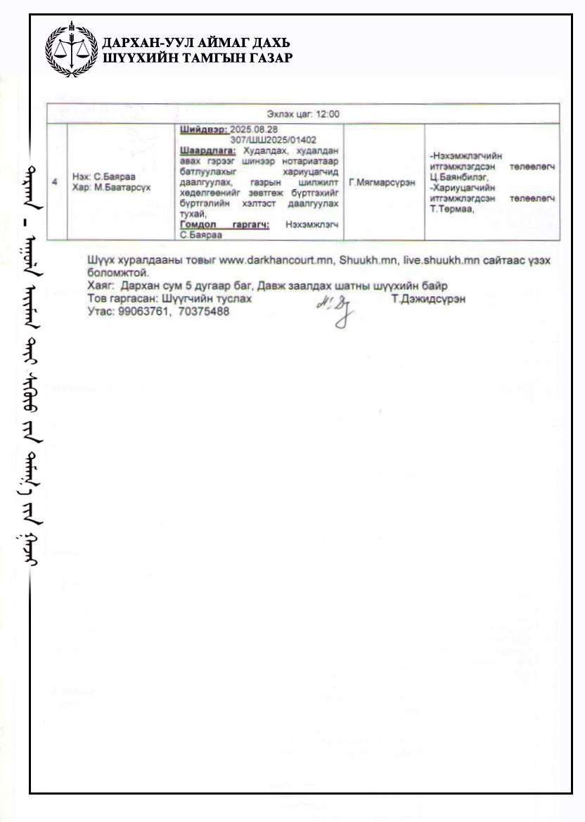 ШҮҮХ ХУРАЛДААНЫ ТОВ /Иргэний хэргийн анхан шатны шүүх 2025.10.06-10.10/