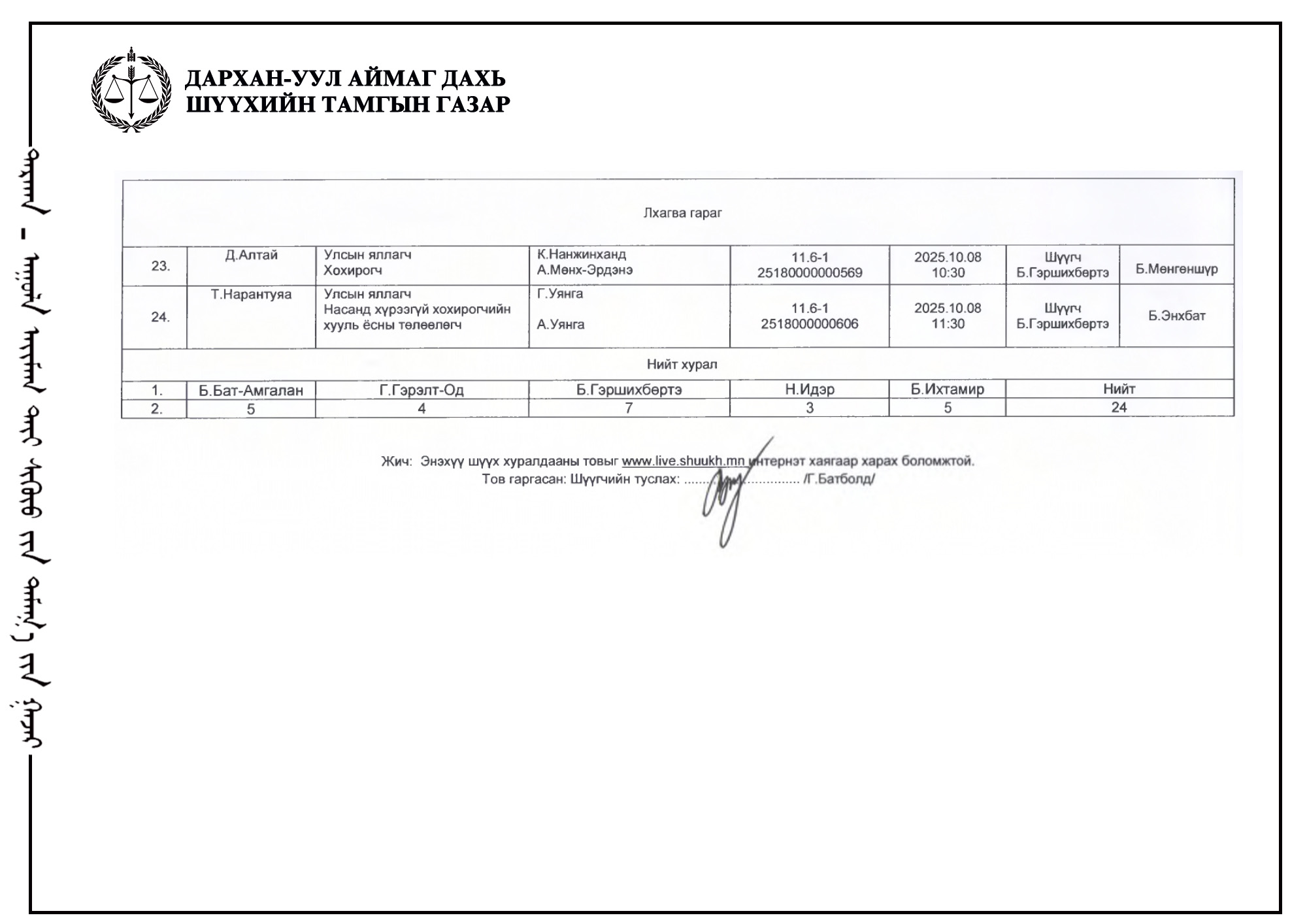 ШҮҮХ ХУРАЛДААНЫ ТОВ /Эрүүгийн хэргийн анхан шатны шүүх 2025.10.06-10.10/