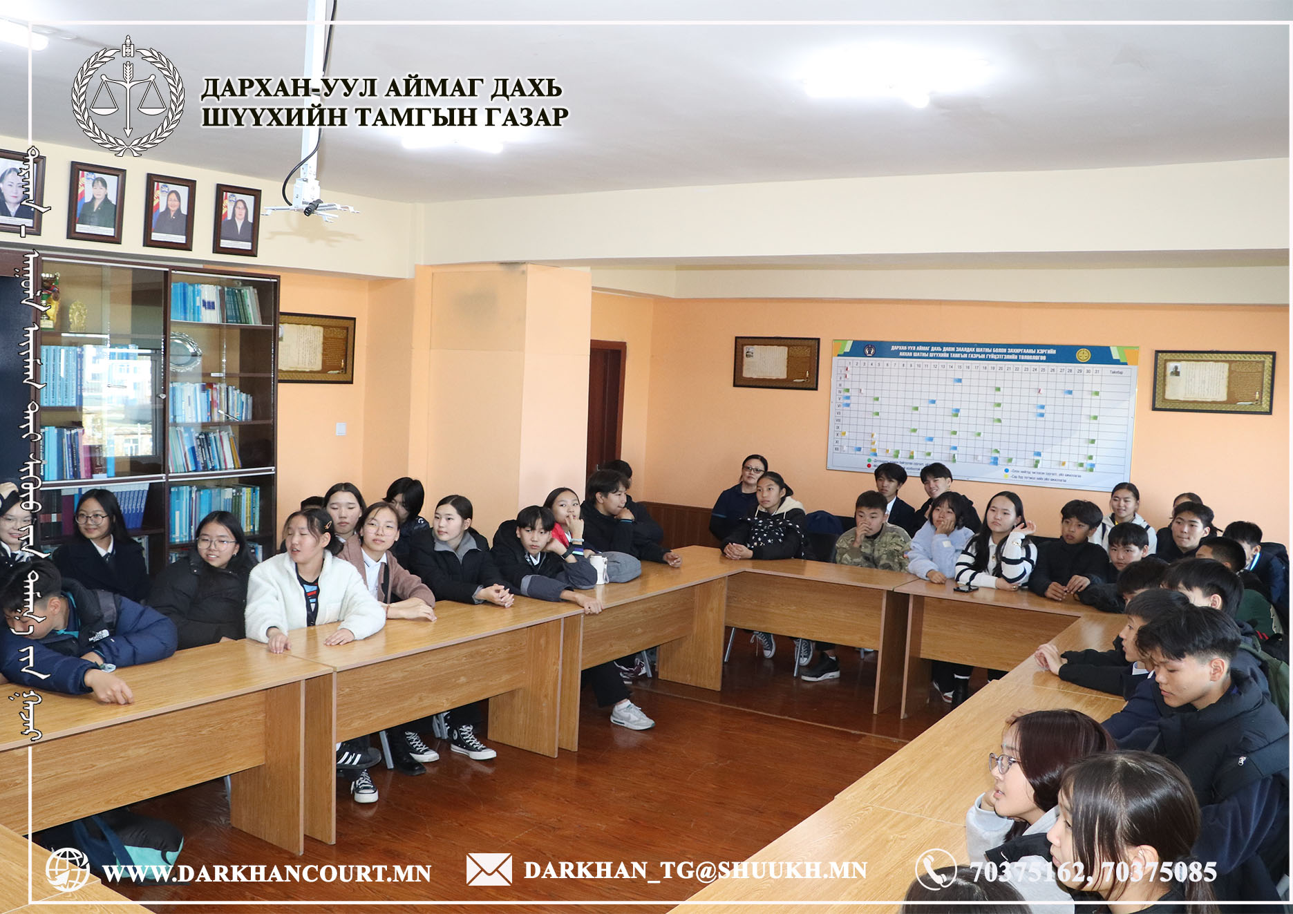 2025-10-09 | 23Шинэ алхам сургуулийн 9 дүгээр ангийн 35 сурагчид, багшийн хамт хүрэлцэн ирж шүүхийн үйл ажиллагаатай танилцлаа.