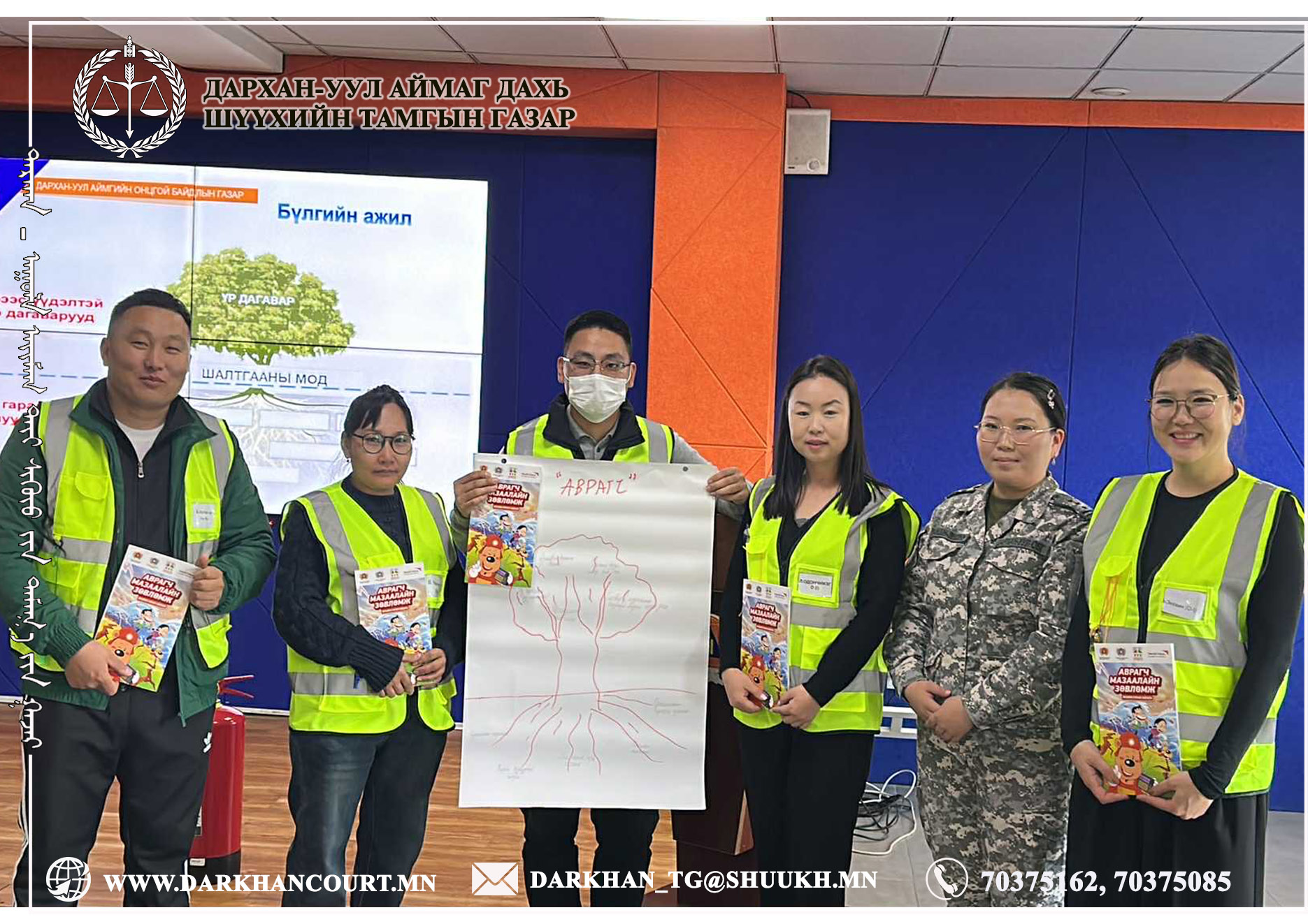 2025-10-09 | 2Байгууллагын Гамшгаас хамгаалах төлөвлөгөөний дагуу шүүхийн барилга байгууламж болон түүний гадна орчинд аюулт үзэгдэл, гамшиг үүссэн үед Мэргэжлийн ангийн гишүүдийн хүлээх үүрэг, хэрхэн ажиллах талаар аймгийн Онцгой байдлын газрын Гал түймэр унтраах, аврах 22 дугаар ангитай хамтран танхимын сургалт зохион байгуулж, дадлага сургуулилт хийлээ.