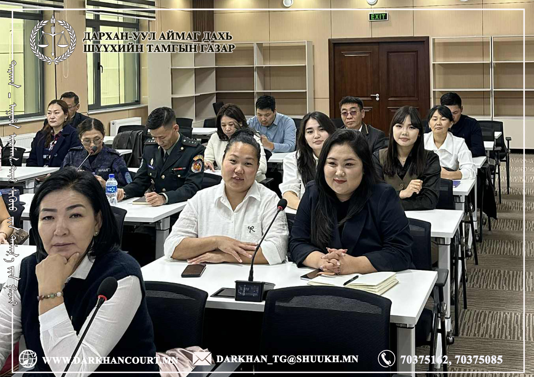 Мөн Монгол Улсын Хүний эрхийн Үндэсний Комиссоос 2025 оны 10 дугаар сарын 09-ний өдөр Дархан-Уул аймаг дахь төрийн захиргаа, үйлчилгээ, тусгай чиг үүрэг бүхий байгууллагын алба хаагчдад “Хүний эрх ба цахим технологи” сургалтыг зохион байгуулж шүүхийн захиргааны ажилтнууд хамрагдаж цахим технологийн хэрэглээнээс үүдэн гарч буй хүний эрх, эрх чөлөөний эрсдэлийн талаар мэдлэг ойлголтыг олж авсан үр өгөөжтэй сургалт болж өндөрлөлөө.
