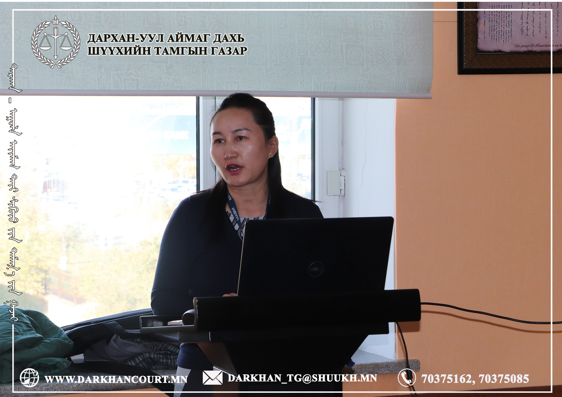 2025-10-10 | 152025 оны 10 дугаар сарын 09-ний өдөр Дархан–Уул аймаг дахь шүүхийн Тамгын газрын төрийн захиргааны болон үйлчилгээний нийт албан хаагчид “Төрийн албаны үйл ажиллагаанд тавих ерөнхий шаардлага” сэдвийн хүрээнд сургалтад хамрагдлаа.