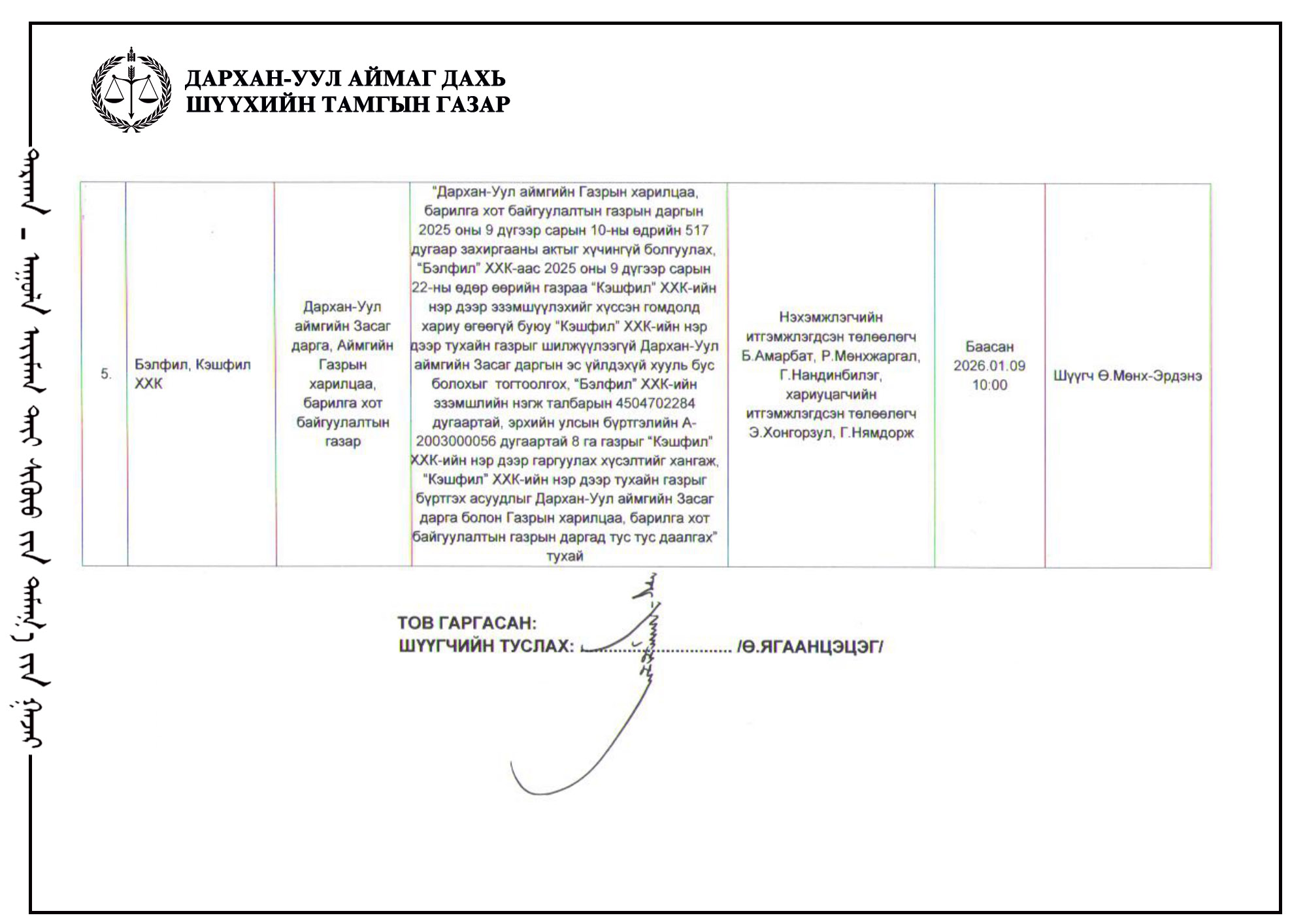 ШҮҮХ ХУРАЛДААНЫ ТОВ /Иргэний хэргийн давж заалдах шатны шүүх 2026.01.05/
