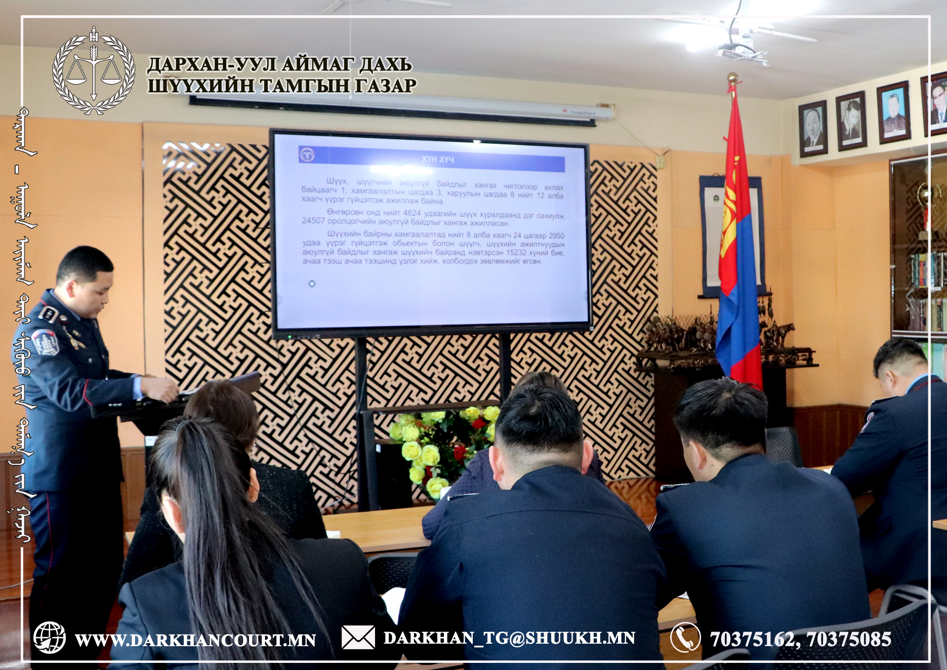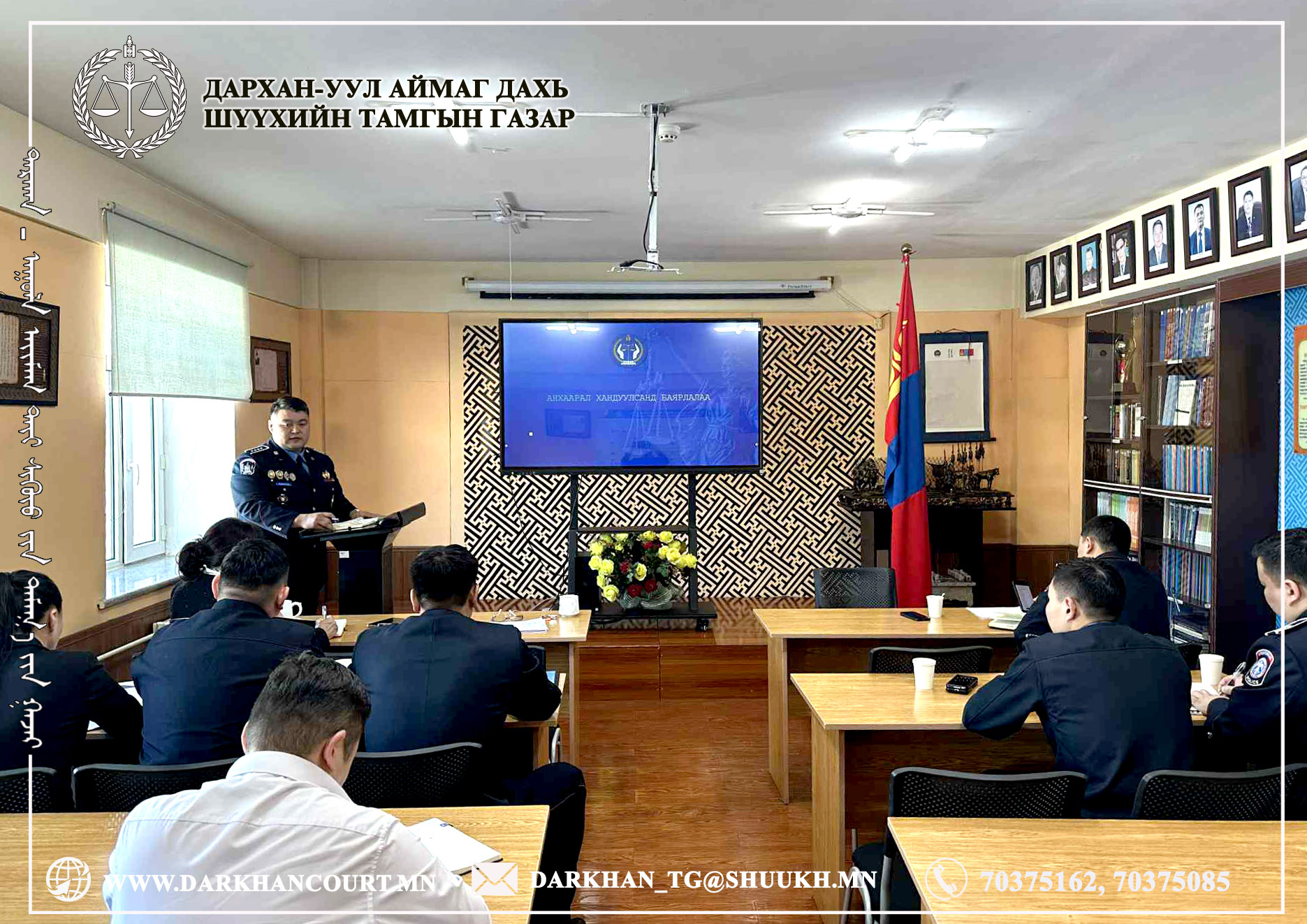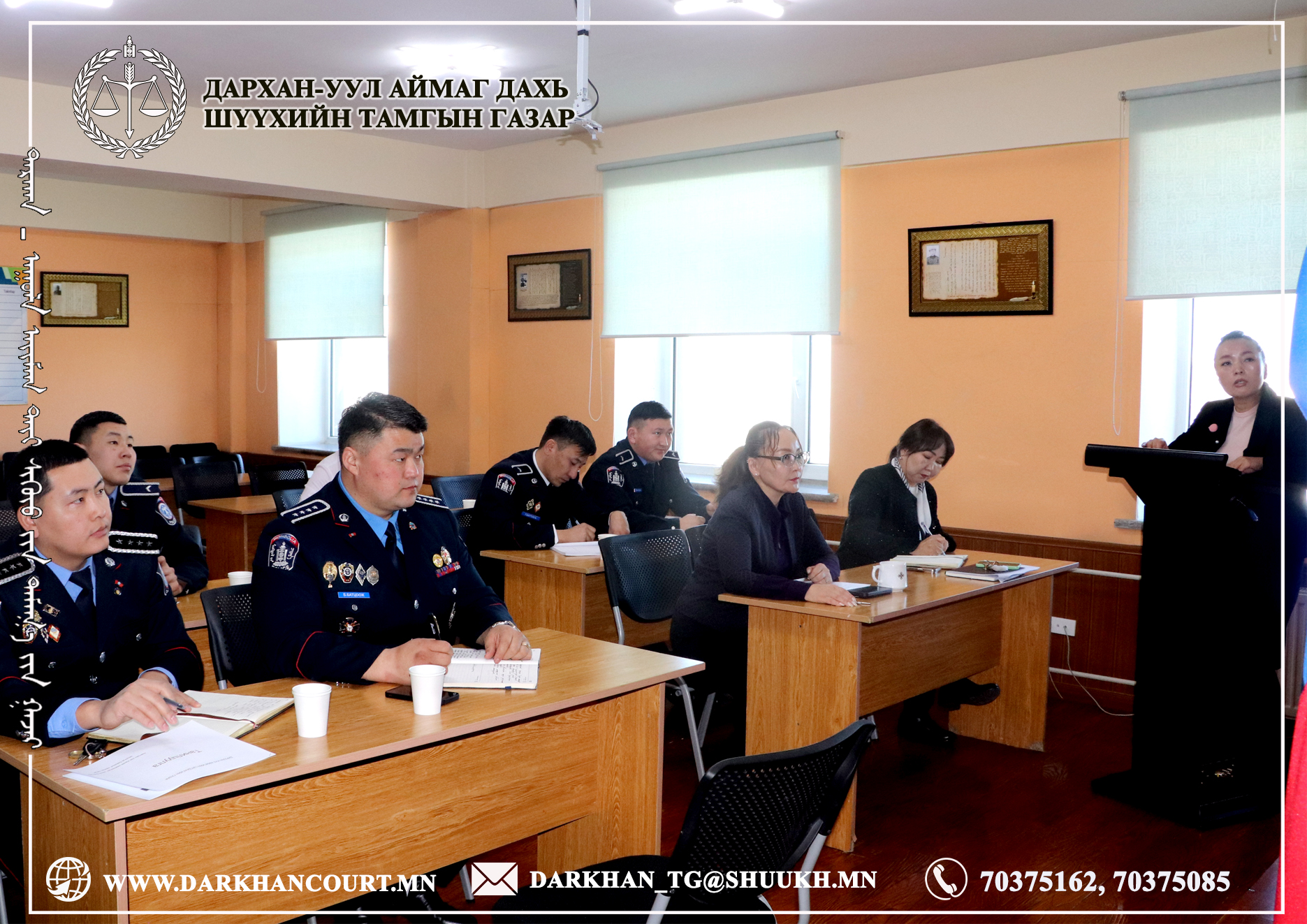 Дархан-Уул аймгийн Цагдаагийн газартай хамтран 2025 онд хэрэгжүүлсэн ажлын үр дүн, 2026 онд хамтран ажиллах ажлын төлөвлөгөөний дагуу гүйцэтгэх ажлын талаар мэдээлэл солилцох уулзалт хийж эрэн сурвалжлах, албадан ирүүлэх ажиллагааны явцын мэдээлэл, шүүхийн байранд үүрэг гүйцэтгэж буй цагдаагийн алба хаагчдын өдөр тутмын үйл ажиллагаандаа анхаарах асуудлын талаар мэдээлэл солилцлоо.