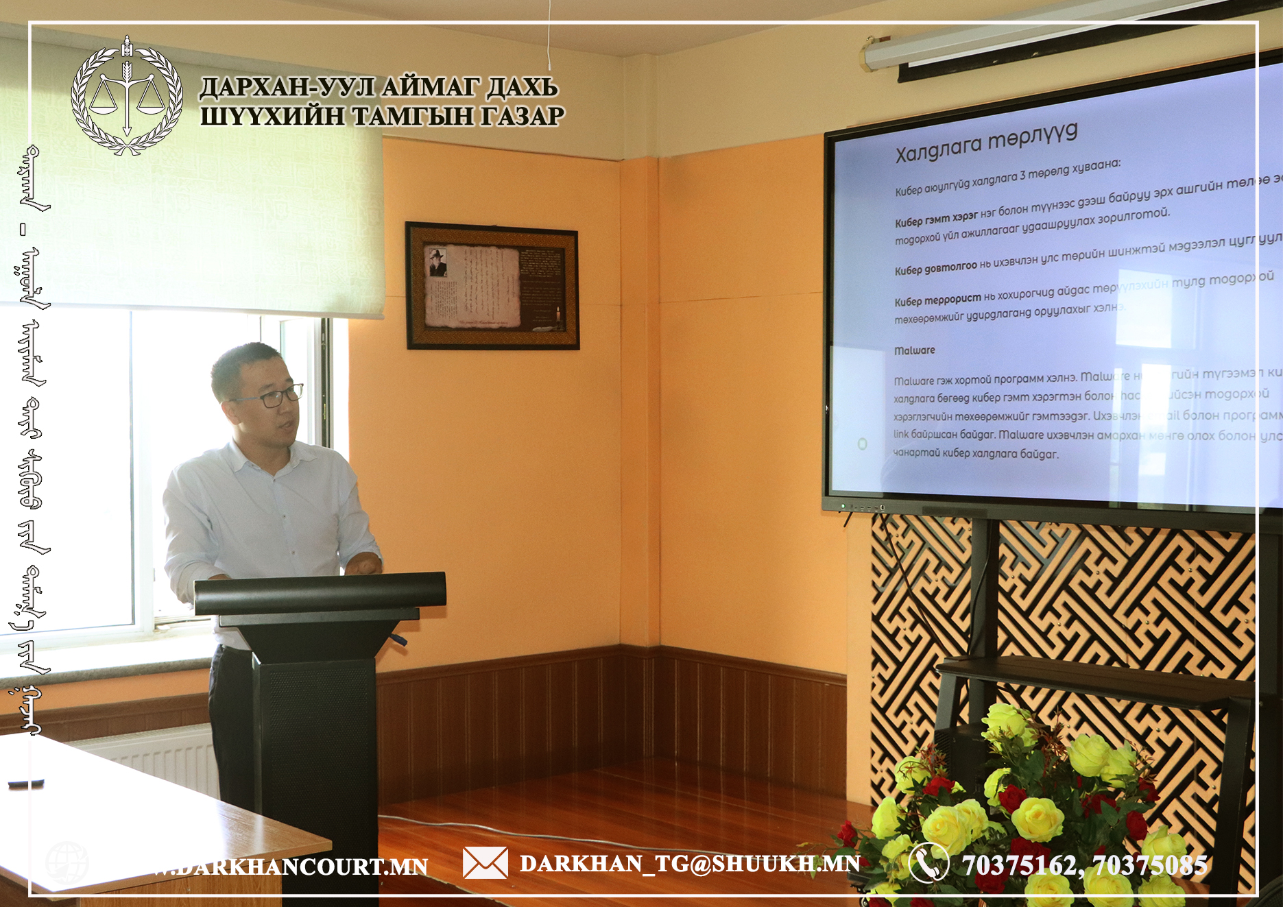 Дархан-уул аймаг дахь шүүхийн Тамгын газрын ажилчдад “Кибер аюулгүй байдлын сургалт” зохион байгууллаа.