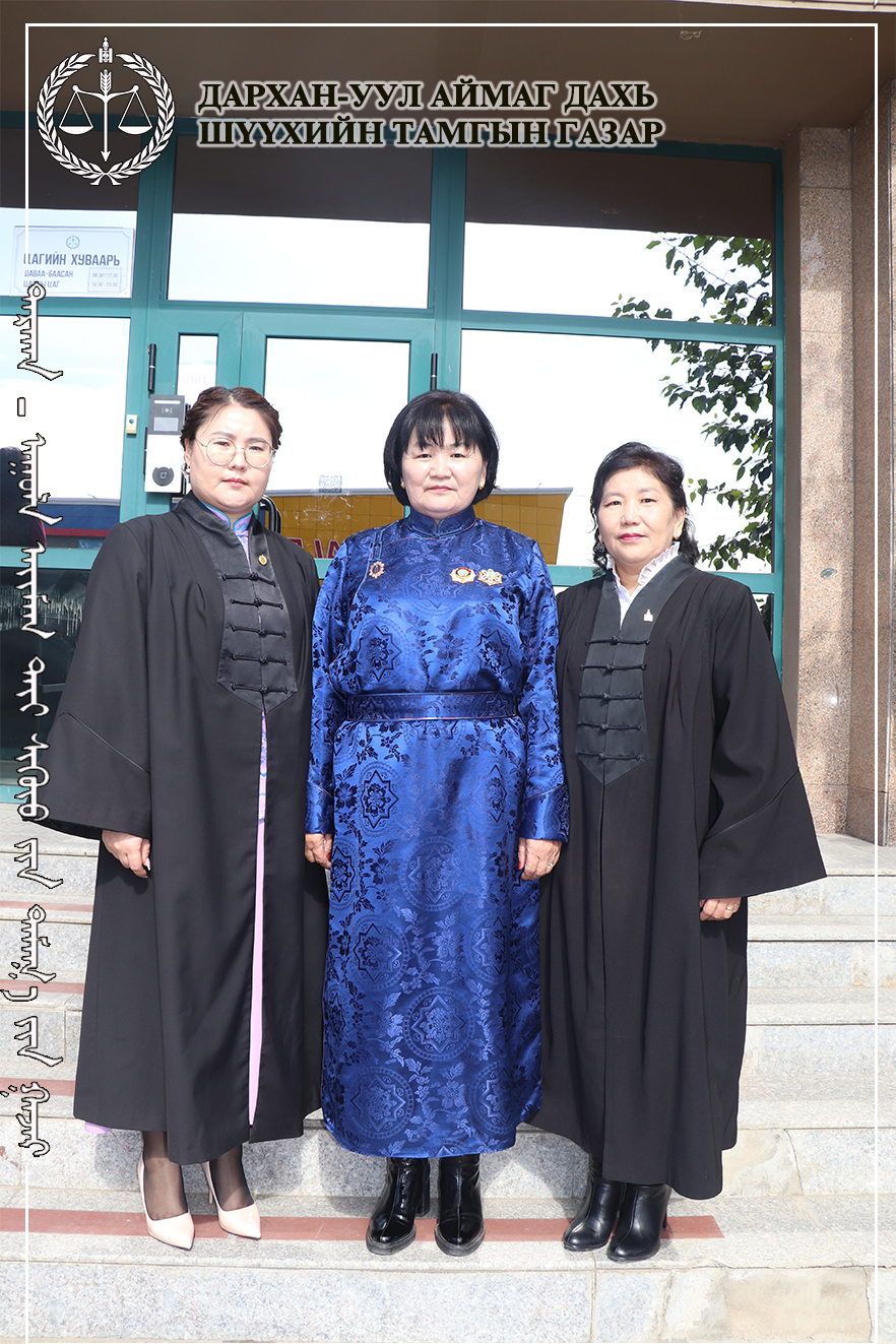 2025-10-17 | 85Дархан-Уул аймаг дахь Захиргааны хэргийн анхан шатны шүүхийн шүүгч Ж.Оюунчимэг өндөр насны тэтгэвэрт гарах насны дээд хязгаарт хүрч Монгол Улсын Ерөнхийлөгчийн 2025 оны 07 дугаар сарын 07-ны өдрийн 99 дүгээр зарлигаар шүүгчийн албан тушаалаас чөлөөлөгдсөнтэй холбогдуулан “Хүндэтгэлийн шүүх хуралдаан”-ыг 2025 оны 09 дүгээр сарын 19-ний өдөр зохион байгууллаа.