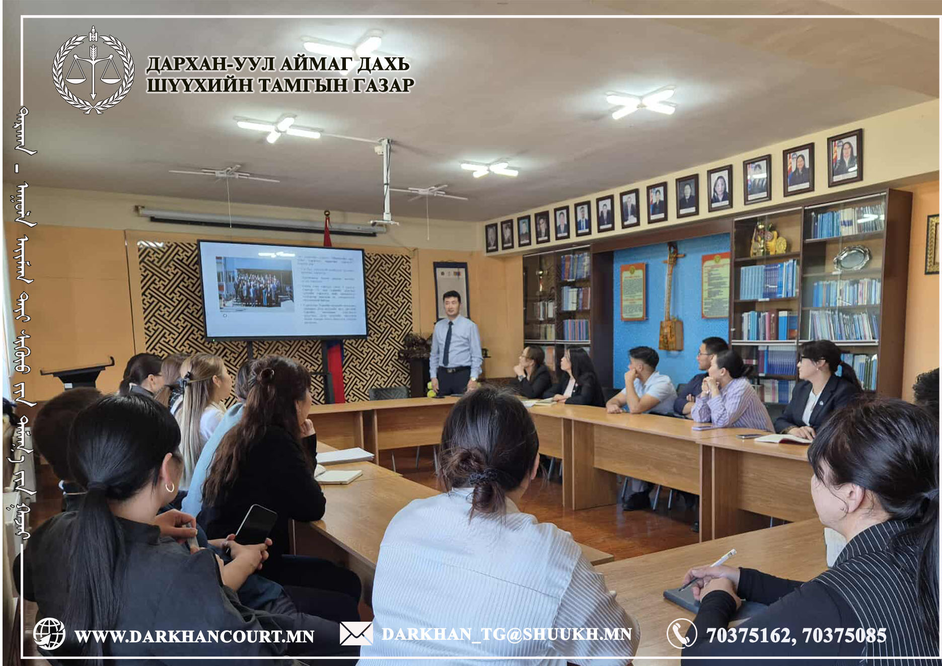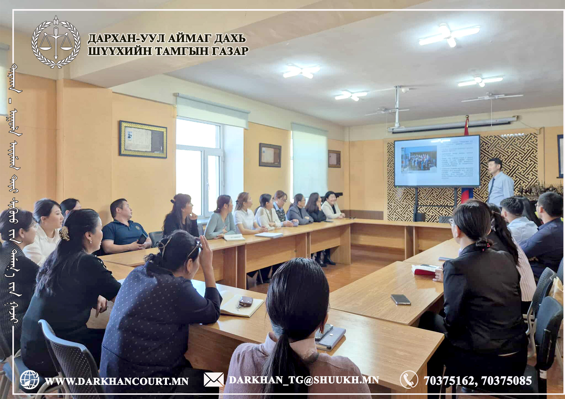 2025-10-15 | 40Монгол Улсын Дээд шүүх, Шүүхийн ерөнхий зөвлөл, Бүгд Найрамдах Турк Улсын Хууль зүйн академийн хамтын ажиллагааны хүрээнд Дархан-Уул аймаг дахь сум дундын анхан шатны шүүхийн Ерөнхий шүүгч Д.Алтантуяа, шүүгч Б.Бат-Амгалан нар Турк улсад очиж “Турк Улсын шүүх болон дагнасан шүүхүүдийн удирдлага зохион байгуулалт” сэдэвт сургалтад хамрагдаж хамт олондоо тус сургалтын талаарх онцлох мэдээллүүдийг хамт олондоо хүргэлээ.