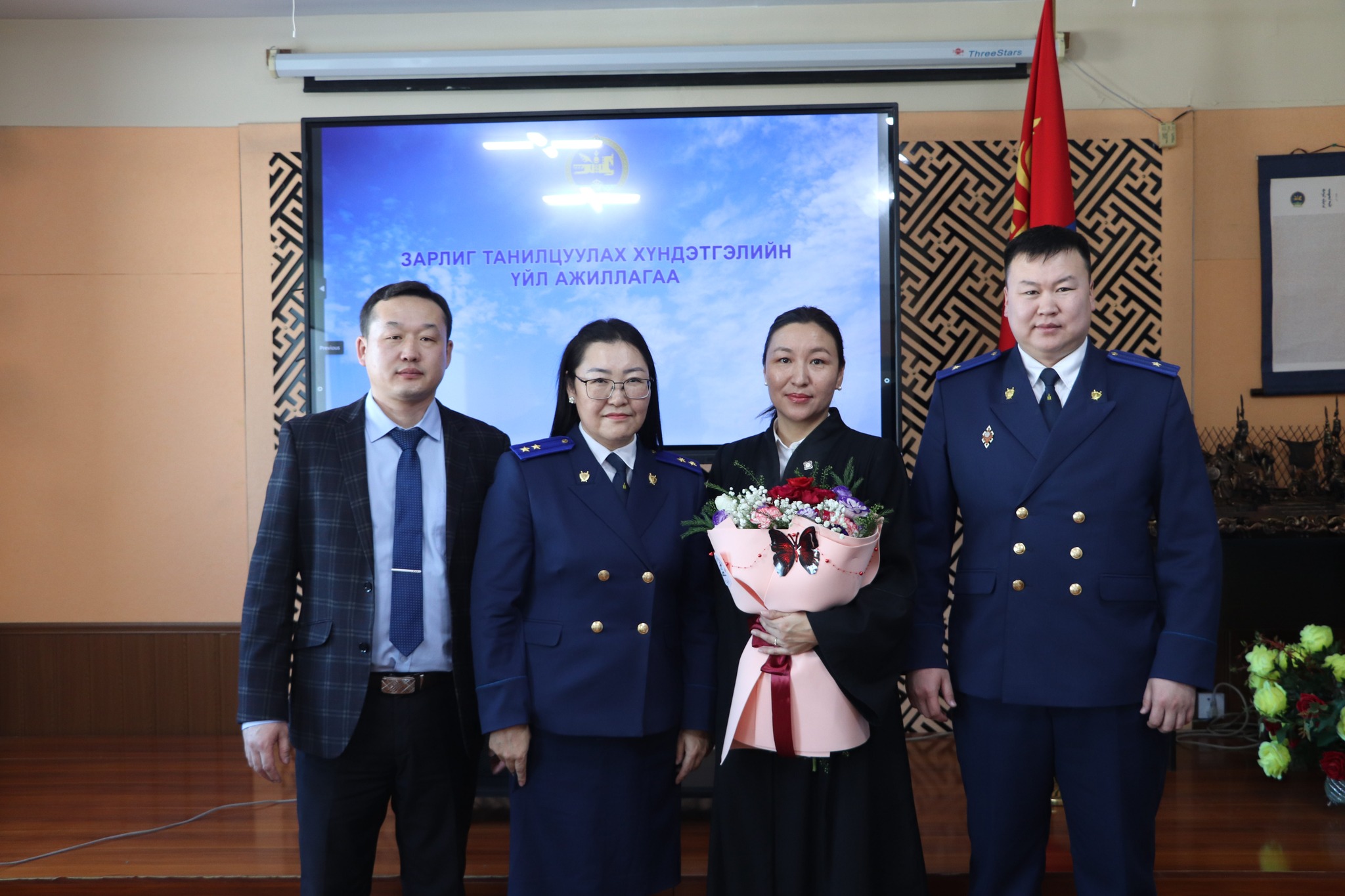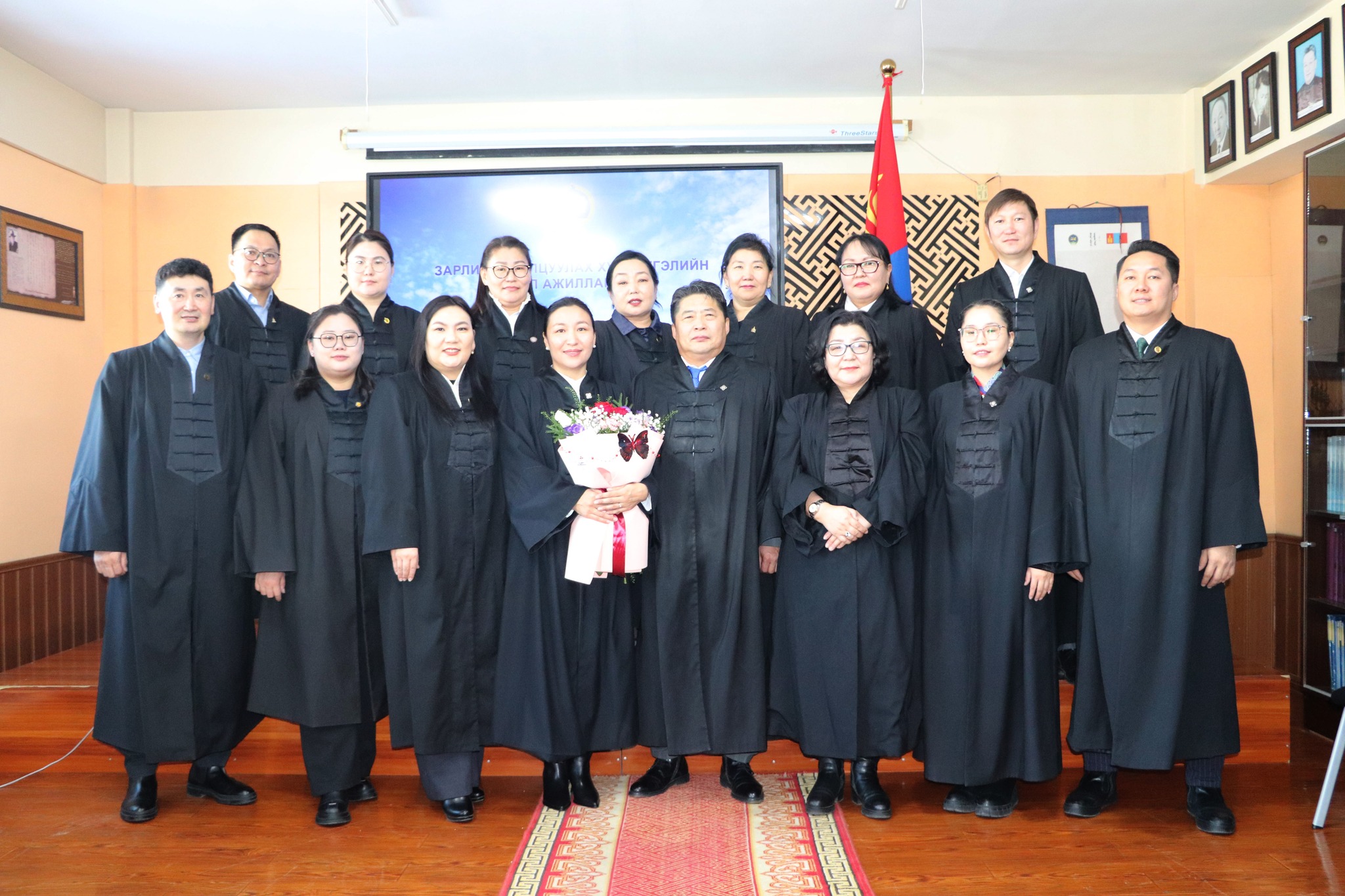 Мөн энэ үеэр Шүүгч М.Оюунцэцэг нь ажлын ар талд тууштай, хариуцлагатай ажиллаж ирсэн туслах А.Банзрагчид талархсанаа илэрхийлэн гарын бэлэг гардуулан баярт мөчөө хамтдаа хуваалцсан юм.