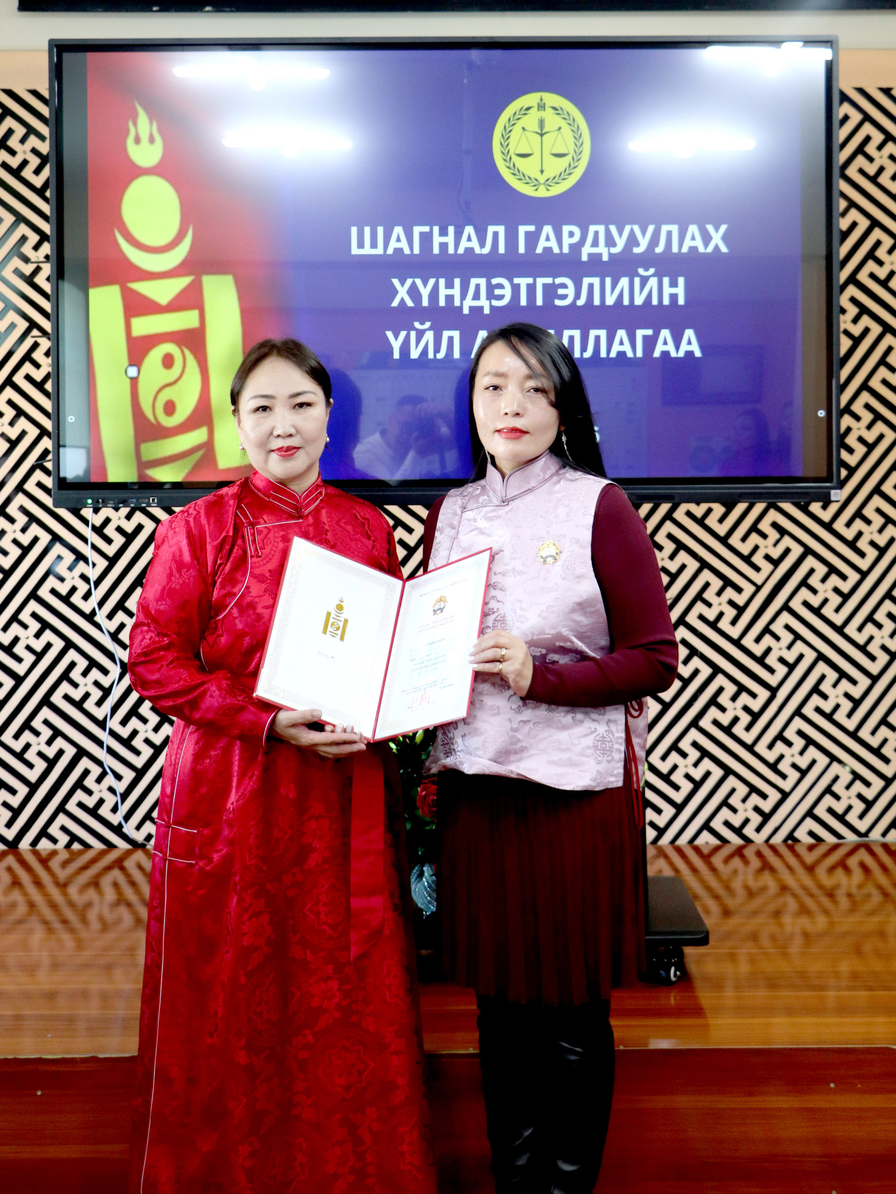 Монгол Улсын Дээд шүүхийн "Жуух бичиг"-ээр шүүгчийн туслах Э.Ундрам, Д.Баярсүрэн, Д.Баярмаа;